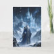 The King of Ice and Snow stands outside his ice castle in the wintery mountains, as stars fill the night sky. Beautiful, Gothic fantasy image on this holiday card.