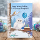 This charming January birthday card showcases a beautiful Snowy Owl holding a snowflake balloon while sitting beside a rich chocolate birthday cake. In the background, a small Barn Owl watches from a snowy winter scene, adding a touch of nature and seasonal magic. Perfect for anyone with a January birthday who loves owls, wildlife, and cozy winter themes, this unique nature-inspired birthday card brings charm, warmth, and winter wonder to their special day.