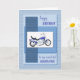 A blue motor cycle on an abstract blue background. The front says "Happy Birthday to my wonderful grandfather". A great card for a grandfather who is a motor bike enthusiast. The textures on the front of this card are printed.