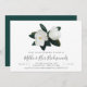 Modern floral bridesmaids brunch invitation features chic block and italic lettering mixed with elegant handwritten script, topped by a pair of graceful white magnolia flowers and lush dark green leaves.