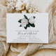 Modern floral rehearsal dinner invitation features chic block and italic lettering mixed with elegant handwritten script, topped by a pair of graceful white magnolia flowers and lush dark green leaves. Includes space for both the ceremony rehearsal and dinner or celebration to follow.