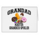 Our Grandad Master Grandkid Spoiler design is available on tees, long sleeve tees, mugs cards, magnets, stickers, buttons, key chains, tote bags and more. What a Great gift for Grandad for Grandparent’s Day.
