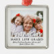 Celebrate the simple joys of the holidays with a custom photo black and white square metal ornament. Picture and all wording on this template are easy to personalize, including quote that reads "Grandkids make life grand." (IMAGE PLACEMENT TIP: An easy way to center a photo exactly how you want is to crop it before uploading to the Zazzle website.) The modern minimalist black and white design features elegant handwritten style script typography and one picture of your choice. This unique keepsake adds a stylish touch to the new grandparents' Xmas home decorations. Merry Christmas Grandma and Grandpa!