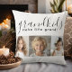 A thoughtful gift the grandparents will treasure, this personalised pillow design features a 3-photo template to personalise with photos of the grandchildren. A combination of modern handwritten script combined with a modern sans serif font spell out "grandkids make life grand!" The background is a bright white on the front and a black and off-white thin stripes pattern on the back. Create lasting memories with this keepsake decorative pillow that makes a wonderful gift for Grandparent's Day, birthday, holiday and more.