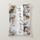 Create a sweet gift for a beloved grandma or grandpa with this beautiful photo collage accent pillow. "Grandkids make life grand" appears in the center in black and gray calligraphy script lettering. Customize with six photos of their grandchildren. Back features wide light neutral gray and white stripes.