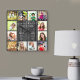 Photo clock for grandparents with 12 of your favourite pictures. Create your own grid style photo collage and add the grandchildren's names (2 to 8 names looks best). The quote reads "grandkids make life grand" and is finished with a love heart. The design is lettered in handwritten and whimsical typography on a rustic country wood look background in shades of dark grey and black. The photo template is set up for you to add your photos working clockwise from top left and your pictures are displayed in square / instagram format. A lovely unique photo gift for grandparents.