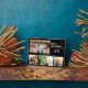 Create your own modern simple best grandpa ever typography script with 4 custom family memories photos keepsake black plaque for grandparents, grandfather's birthday, or Father's Day.