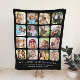 Create a personalised keepsake sherpa blanket for your grandma featuring 16 rounded square frames holding photos of her grandchildren, family, pets, travels or other special memories and two lines of customisable text, such as "We Love You Grandma" and the names of her family members, in elegant white typography on a black background.