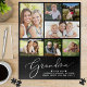 A fun keepsake black jigsaw puzzle for the best grandma in the world featuring "Grandma" in an elegant white script, a 7 photo collage of her family and their names in modern white typography.