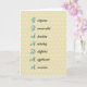 Grandmothers are special, so here is a birthday card to let her know how wonderful you think she is. Gorgeous, Resourceful, Adorable, Nurturing, Delightful, Magnificent, Awesome - all the attributes of a fantastic grandmother, in soft golden and turquoise colours. Inside, the greeting can be customised. The suggestion is "Happy Birthday" and "to a very special grandma". A little extra: three turquoise flowers adorn the inside of the card, to co-ordinate with the front.