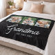 Grandma Established Script Black 3 Photo Fleece Blanket