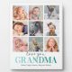 Personalised grandmother photo plaque featuring a elegant white background that can be changed to any colour, a 9 picture collage template for you to customise, the saying "love you grandma", and the names of the grandchildren.