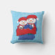 The colour palette, featuring bright red, cobalt blue, dark teal green, white, and frosty blue, adds a festive charm to your holiday decor. With its adorable, sweet, fun, and festive design, the "Snowman Snuggles" Christmas Throw Pillow is the perfect way to add warmth and joy to your living space.
