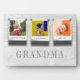 Create an elegant unique gift for grandma with this three instagram style photo collage plaque. A rustic wood effect print with "GRANDMA" or your grandma's preferred nickname in sophisticated gray lettering and the grandchildren's names overlaid on the photo's.