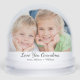 A snow globe keepsake for the best grandma ever featuring two photos of her grandchild or grandchildren, "Love You Grandma" in a stylish script and their names and the year or other text in simple lettering.