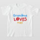 Grandma Loves Me T-shirts, cards, stickers, bodysuits bags, and more with colourful red, yellow, and blue text and heart design. These Grandma Loves me apparel and gift items will make grandma smile!