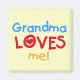 Grandma Loves Me T-shirts, cards, stickers, bodysuits bags, and more with colourful red, yellow, and blue text and heart design. These Grandma Loves me apparel and gift items will make grandma smile!