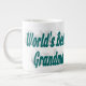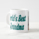 Jumbo mug with World's best grandma with your own photo and 3D blue green text. Mug available in several styles and colours.