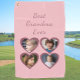 Design your own golf towel with this pretty pink photo template with space to add 4 custom photos. Upload your favourite pictures and customise the name with your personalisation. A great gift for Grandma when you add your own photos of the grandchildren. Features a soft pink cover with glitter heart backgrounds on the heart photo templates.