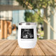 A minimalist ultrasound photo pregnancy announcement wine tumbler. This wine tumbler features a minimalist typewriter text and ultrasound photo. The photo is for placement purposes only and can be replaced with any photo you choose. All text can be customised with any wording of your choice. The perfect way pregnancy announcement gift for any wine-loving grandma.