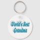Key chain with World's best grandma in 3D sky blue text. Round and square key chains available in several sizes.