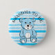 Cute teddy bear "grandma to be" button for a blue striped  themed teddy bear boy's baby shower.