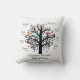 Special Keepsake Throw Pillow for Grandma/Grandpa, Black Tree with Names & Dates for grandchildren. Add Grandma's Name at the trunk of the tree. Tree of love is filled with multi-coloured hearts, with room to add names and birthdays for up to eight grandchildren. Back of Pillow has the same black tree, and below the tree, the following text: Grandmas are moms with lots of frosting! Perfect gift for any grandparent, and a great way for them to remember birthdays! Black on White with Colourful Hearts. (Message the designer if you need more names. Design can be customised to fit your needs)
