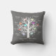 Special Keepsake Throw Pillow for Grandma/Grandpa, White Tree with Names & Dates for grandchildren. Add Grandma's Name at the trunk of the tree. Tree of love is filled with multi-coloured hearts, with room to add names and birthdays for up to eight grandchildren. Back of Pillow has the same white tree, and below the tree, the following text: Grandmas are moms with lots of frosting! Perfect gift for any grandparent, and a great way for them to remember birthdays! White on Charcoal Grey with Colourful Hearts. (Message the designer if you need more names. Design can be customised to fit your needs)