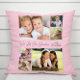 Celebrate Grandma with this custom photo collage keepsake pillow with light grey script and typography against a light pink background. You can personalise with six family photos of grandchildren, family members, pets, etc., and personalise the expression to "I Love You" or "We Love You," and whether she is called "Grandma," "Nana," "Mommom," etc. You can also add the grandchildren's names and year.