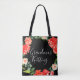 Grandma's Knitting Red Watercolor Floral Black Tote Bag