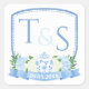Grandmillenial Blue And White Wedding Crest Square Sticker