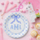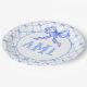 This topiary plate design features a very chic blue and white bamboo lattice patterned background with a coordinating blue bows. You can personalise with your monogram initials.