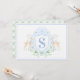 This Christmas Card has a preppy grandmillennial design featuring a blue reindeer crest on the front. The back has red text that says "Merry Christmas." You can personalise with a name, year and your initial. The back has a coordinating pattern blue and green trellis.