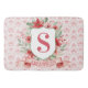 This Christmas bath mat design has a preppy grandmillennial design featuring a floral crest surrounded with berries with a monogram letter in the center.