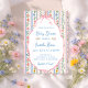 A soft vintage-inspired baby shower invitation with delicate watercolor wildflowers in pastel pink and blue tones. The striped floral background creates a light, elegant feel, while the scalloped frame and pink bow add a sweet and timeless touch. Matching items available.