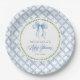 Grandmillennial blue bow baby shower paper plate with lattice design is a charming way to add both elegance and personality to your celebration. This customisable party plate features a soft watercolor blue bow at the centre, encircled by a delicate green leafy wreath that enhances the timeless aesthetic. The outer edge showcases a hand-painted blue lattice pattern, reminiscent of vintage china and classic Southern charm, giving the design a refined yet playful touch. The style embodies the grandmillennial trend, blending traditional motifs like bows and florals with fresh, modern details that feel both nostalgic and current. Customisable text in the centre allows you to add the guest of honour’s name, event, and date, making the plates a personalised detail that doubles as a keepsake. Perfect for baby showers, gender reveal parties, or even a first birthday, these disposable plates bring convenience without sacrificing sophistication. Their versatile design complements both classic and modern shower themes, working seamlessly with floral arrangements, pastel décor, or elegant tablescapes. Whether serving cake, hors d’oeuvres, or snacks, these plates elevate the party experience while keeping cleanup simple. A stylish blend of practicality and beauty, these custom baby shower plates are ideal for hosts looking to incorporate a touch of grandmillennial elegance into their celebration.