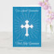 Celebrate a grandnephew’s first Holy communion with this card that congratulates him and wishes him God’s blessings. A shining cross is on the centre front of this blue card.