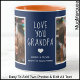 This personalized navy photo mug has a clean, modern design. Featuring two framed photo slots and editable white text, it’s perfect for celebrating Grandpa—or easily customized for Grandma, Mom, Dad, or anyone special. The center message reads “LOVE YOU GRANDPA” with a sweet heart graphic underneath, plus space for names and a personal note. The framed photo layout adds a polished touch, while the bold navy background with contrasting inner color (shown in orange) makes the whole design pop. A thoughtful, custom gift for birthdays, holidays, or just to show you care.