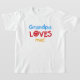 Grandpa Loves Me T-shirts, long sleeve tees, raglan T-shirts, bodysuits, football bodysuits, tutu bodysuits, organic bodysuits, dark T-shirts, sweatshirts, pullover hoodies, ruffle shirts and dresses, sleeveless dresses, hats, and other apparel for kids, toddlers, and babies with a colourful blue, red, and gold text and heart design, great for grandpa's boy or girl.