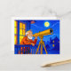 Cheerful illustration of a senior man looking through a telescope at the night sky, exploring stars and planets. Perfect for active retirees, astronomy enthusiasts, and whimsical hobby scenes.