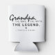 Funny cute grandpa can cooler, featuring the the cool saying 'Grandpa. The Man. The Myth. The Legend' on a classic white background which can be changed to any colour using the 'customise further' option.
