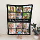 Grandparents 12 Photo Collage Black Fleece Blanket
