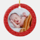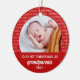 Celebrate the joyful holiday with your family with our "Grandparent's 1st Christmas Script Frame Photo" round ceramic ornament. This design features a stylish Merry Christmas script pattern frame with vibrant modern text "Our 1st Christmas as grandparents", and year. At the back, there is one baby photo and the name. This unique ornament will add an elegant touch to your Xmas home decorations.