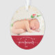 “Our First Christmas as grandparents.” A playful visual of champagne gold snowflakes overlaying the photo of your choice and white handwritten script typography with customised year over red, helps you usher in Christmas and New Year. On the back, additional champagne gold snowflakes and personalised handwritten typography of baby’s name and birth date overlay a red background. Feel the warmth and joy of the holiday season whenever you use this stylish and modern personalised photo keepsake ornament. Perfect for the newly proud grandparents!