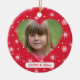 This cute Christmas kids photo ornament featuring a heart cutout and a red background with a snowflake design can be personalised with the name of your child, the year, and a photo. Makes the perfect gift for granparents like grandma and grandpa from the grandchild!