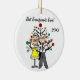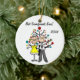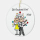 A pretty round ceramic keepsake Christmas holiday ornament features a stick figure elderly couple in front of a decorated Christmas tree with areas you can customise with text of your choice and the current year! This cute holiday keepsake ornament makes a great gift for grandparents!
