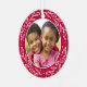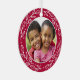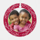This sweet ornament is perfect for grandparents. One side of the ornament features a round photo framed by a white wreath and a red background. On the other side of the ornament, you can customise the text (shown as "we love our Grandma and Grampa") and add your names and a date. The red background on each side can be edited if desired.