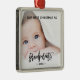 Grandparents First Christmas Baby Photo Metal Ornament. Make your 1st Christmas as grandparents special. This premium square metal ornament features a handwritten signature script and personalised photo. The colour of the fonts and typeface can be customised. Custom orders are available at truullc@gmail.com.