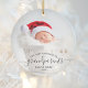Help them celebrate their first grandchild with this beautiful modern keepsake ornament. The off-black text reads "Our first Christmas as grandparents," with the word "grandparents" in elegant handwriting script with flourishes before and after. Easily replace the sample image with your favorite photo of the new baby, and add his or her name and the year. A white gradient filter helps make the text pop.