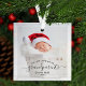 Help them celebrate their first grandchild with this beautiful modern keepsake ornament. The off-black text reads "Our first Christmas as grandparents," with the word "grandparents" in elegant handwriting script with flourishes before and after. Easily replace the sample image with your favorite photo of the new baby, and add his or her name and the year. A white gradient filter helps make the text pop.